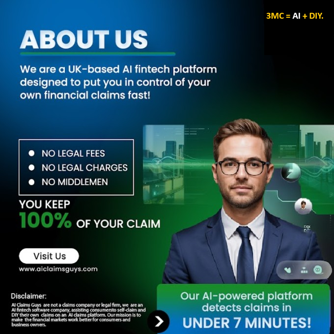 We are a UK based AI Fintech company with a mission to make the Financial Products Market & The Personal Injury Sector "Work Better" for UK Consumers & Business owners. The AI Claims Guy software operates a simple but unique reactive AI real-time online dispute resolution (ODR) platform, designed to make sure banks, lenders, and other financial institutions as well as insurers treat you fairly. Offering UK consumers a platform for seeking out, redress, accurate remediation payouts, and accountability within the sectors.